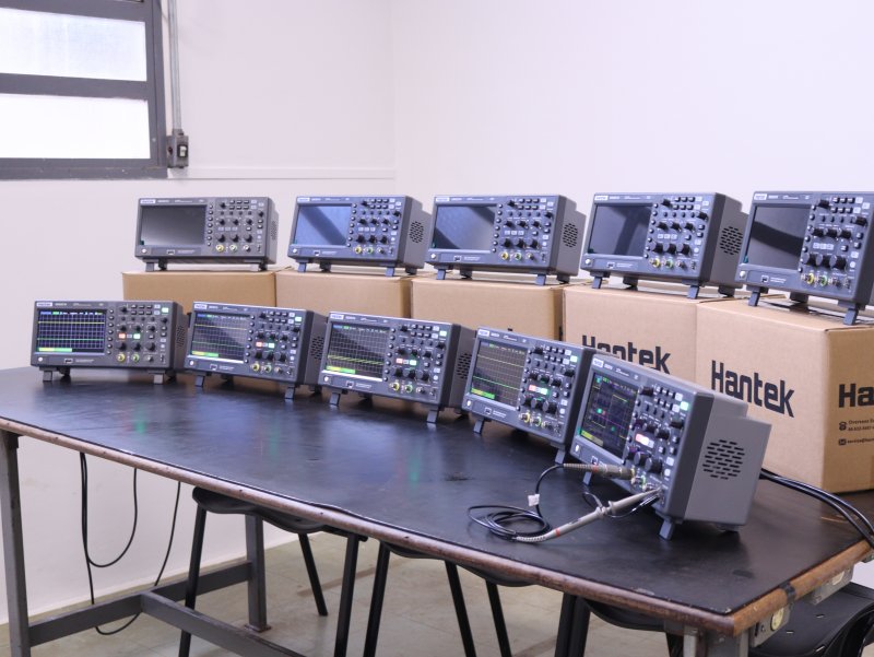 O curso de Engenharia Elétrica do UNIFEB (Centro Universitário da Fundação Educacional de Barretos) acaba de receber um importante reforço em sua estrutura laboratorial. Foram adquiridos 10 osciloscópios digitais da marca Hantek, modelo DSO2C10, com 100 MHz, dois canais e taxa de amostragem de 1 GS/s, que passam a integrar as atividades práticas da graduação.